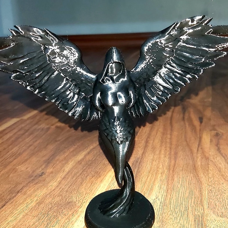 مجسمهی مفهومی با طراحی بالدار و فرم هندسی — چهرهی پنهان، بالهای باز، و جزئیات گلدار روی پایه.