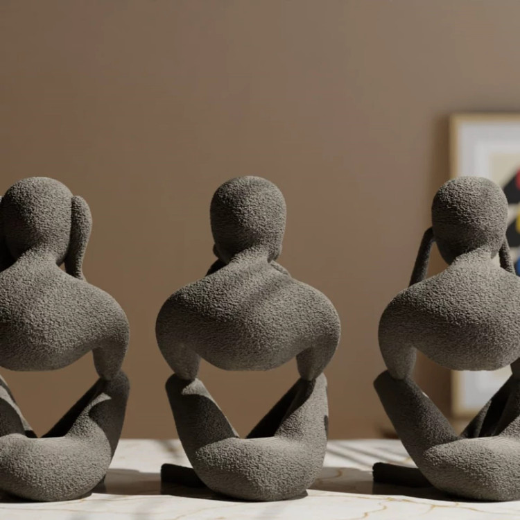 این ست هنری با طراحی مینیمال و بافت تیره، الهامگرفته از مثل معروف «سه میمون دانا»، مناسب برای دکور فضاهای مدرن، کلکسیونهای مفهومی یا هدیهای خاص برای اهل معنا و طراحی.